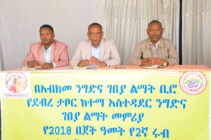 የደብረታቦር ከተማ አስተዳደር ንግድና ገበያ ልማት መምሪያ ከባለድርሻ አካላት ጋር የ2018 በጀት አመት ስድስት ወራት እቅድ አፈጻፀም ግምገማ መድረክ አካሂዷል፡፡