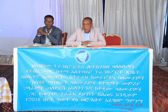 የደብረታቦር ከተማ አስተዳደር ትራንስፖርት ጽ/ቤት ከባለድርሻ አካላት ጋር የ2018 በጀት አመት ስድስት ወራት እቅድ አፈጻፀም ግምገማ እና በመንገድ ትራፊክ ደህንነት